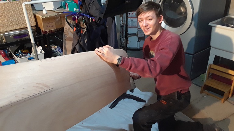 After school Gideon finishes cutting and planing last part of sheer, completing Step 108!!!!