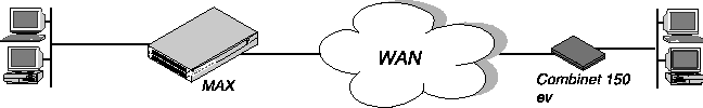 The MAX supports Combinet bridging to link two LANs as though they were one segment. Figure 3-4 shows a Combinet connection between two networks.