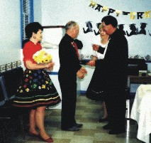 On Tuesday, May 8th Laurie and Elizabeth Hutchcroft did their last regular calling for the LaHave River Ramblers. They started this club thirteen years ago and it has grown from one square to a very activeclub, stealing banner, attending conventions, festivals, Spring Flings and other special dances. Laurie andElizabeth have moved out of the area and now live in Cornwallis. The Club made a special night out of thefinal dance of the season to honour Laurie and Elizabeth. Dancers were given the opportunity to recallexperiences in the Club and thanked Laurie and Elizabeth and wished them the best in the future.