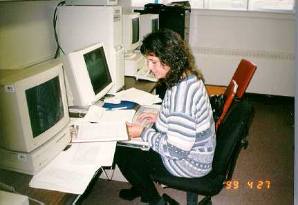 - Monica using a computer at the facilities of one of our esteemed benefactors, National Research Council of Canada Institute for Marine Biosciences, Halifax, Jan.-March, 1999.