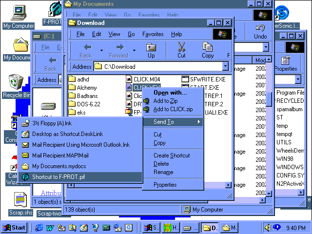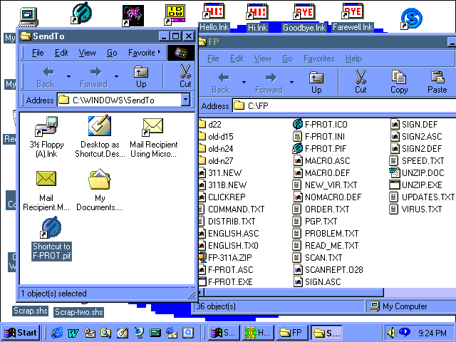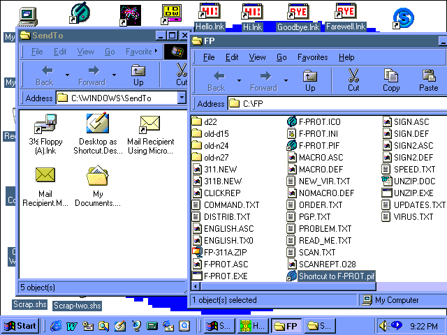 - Drag and drop the shortcut to F-Prot to the SendTo directory.